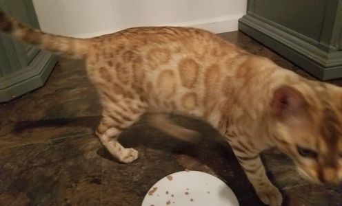 We are excited to have our new stud A-Murr Ottoman of Chicagobengals. We call him "Tikki" he is HCM normal, PK N/N and PRA normal. We are excited to see what he produces. He looks like a clouded leopard. He has amazing structure small ears and a fat tail and an amazing pattern!